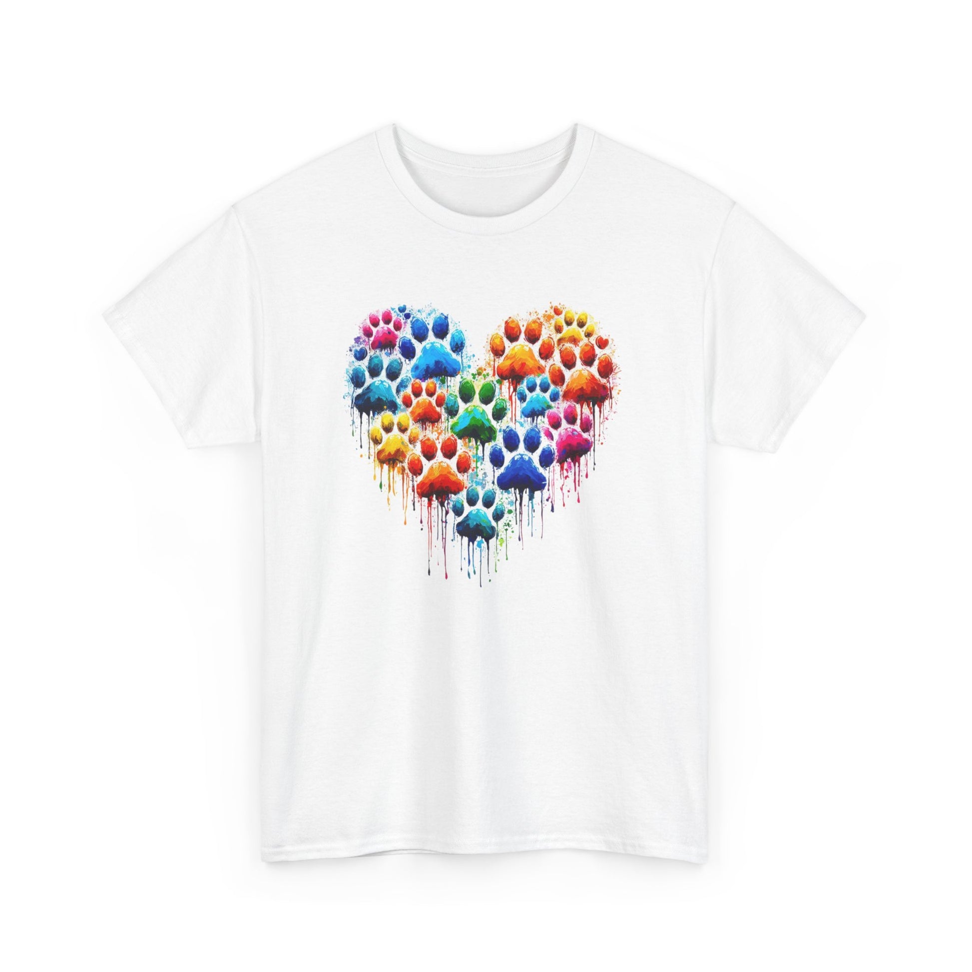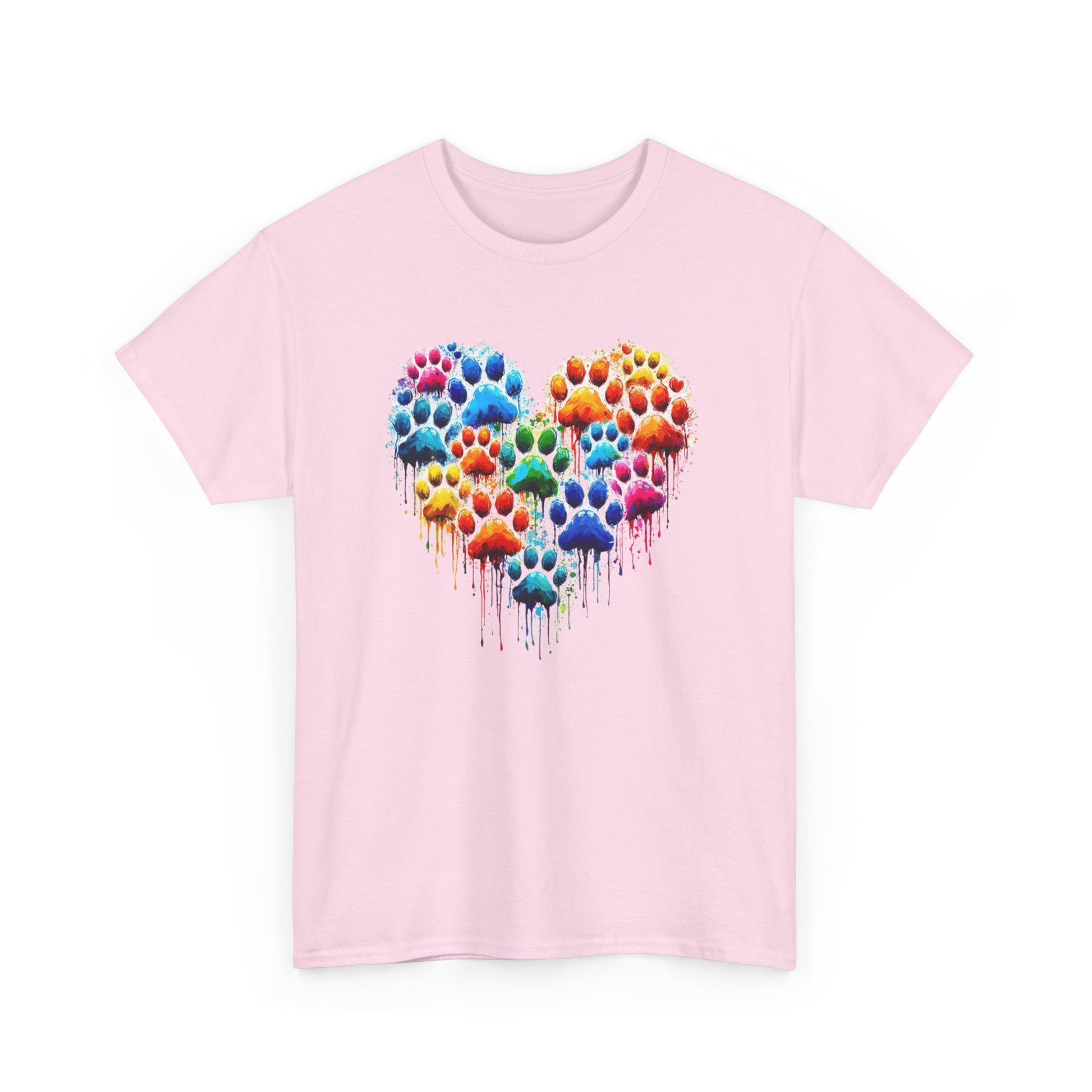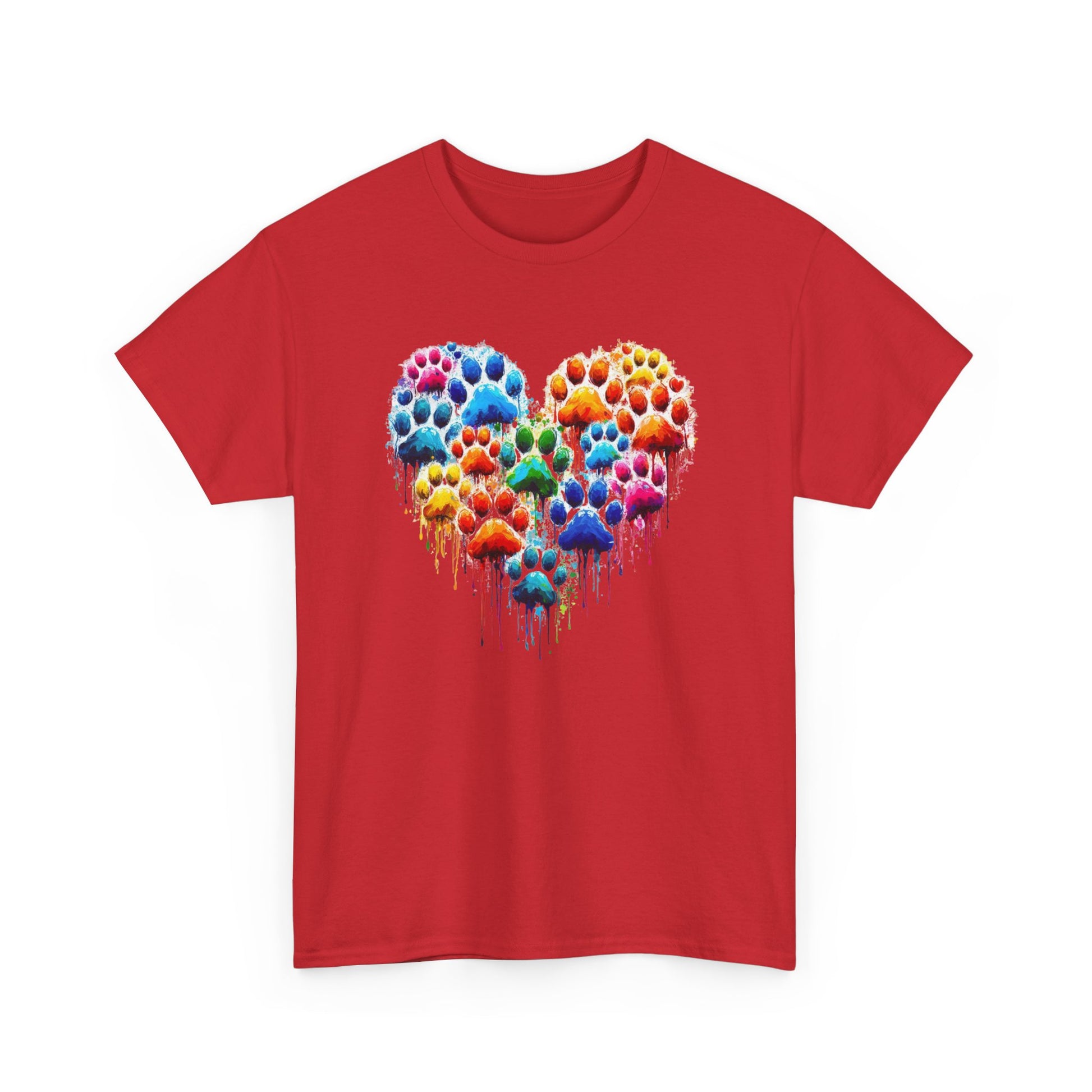 Colorful Paw Print Heart Tee - Animal Lover Gift, Pet Adoption Awareness, Casual Wear, Birthday Present, Nature Enthusiast Shirt