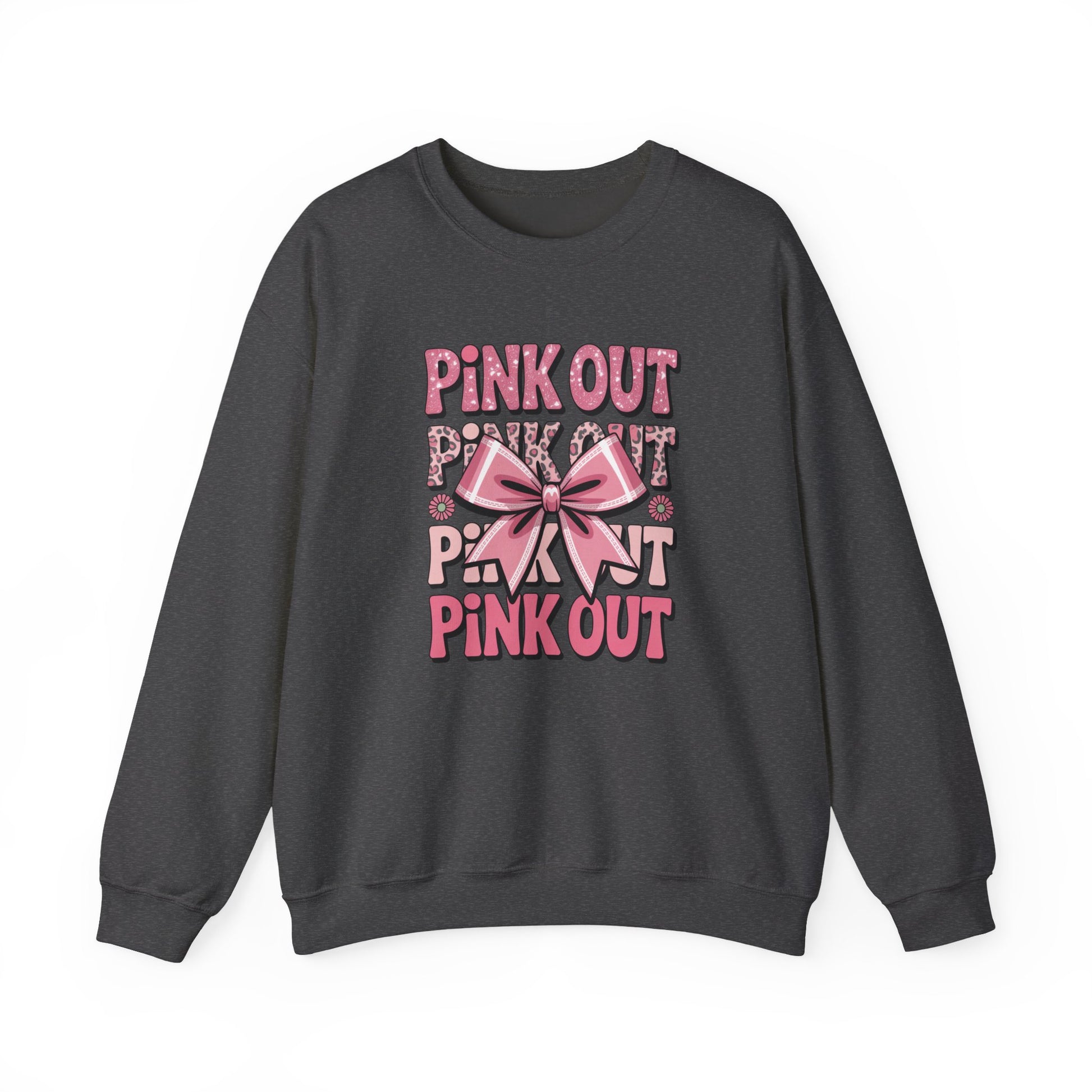 Elevate your wardrobe with this cozy Unisex Heavy Blend™ Crewneck Sweatshirt, perfect for anyone seeking comfort and style. The playful "Pink Out" design, featuring a charming bow, radiates positivity and lends a fun vibe to your outfit. Ideal for casual outings or cozy days at home, this sweatshirt is a must-have for anyone looking to express their lively personality. Celebrate events like breast cancer awareness month or simply enjoy its uplifting style year-round. Whether it's a gift for a friend or a treat for yourself, this sweatshirt captures the essence of joy and warmth, making it fitting for birthdays, holidays, or any occasion that calls for a pop of color!