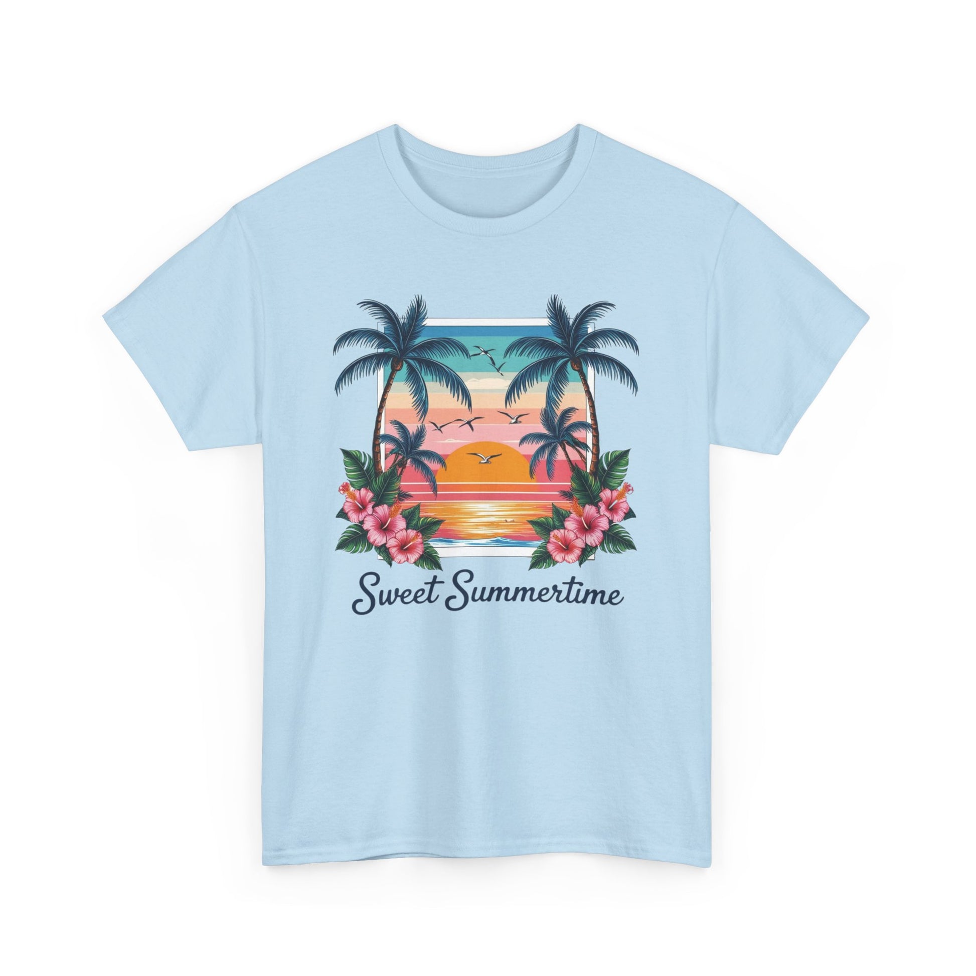 T-Shirt Hawaiian Sunset Palm Tree Walk Afternoon Beach Plage Unisex Tee