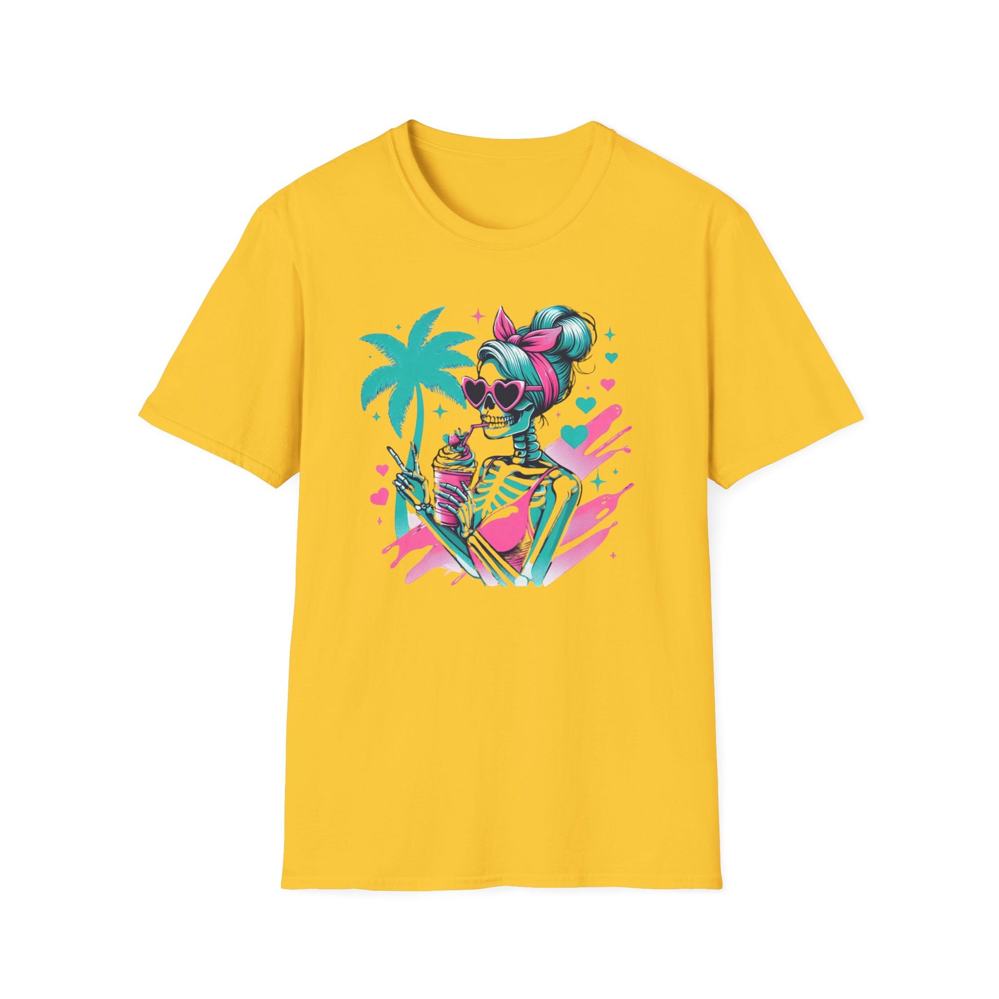 Vibrant Skeleton Beach Vibes T-Shirt, Summer Casual Tee, Tropical Holiday Shirt, Unisex Graphic Tee, Vacation Outfit